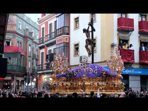 La banda de cornetas y tambores de san Juan evangelista es la que acompaña a este misterio, este Cristo lo tallo el imaginero Álvarez duarte, para mi gusto tiene un fallo que es un peli chico, pero tiene una peculiar expresión corporal como de intentar tirar de los clavos hacia afuera, y de ahí ese cuello tan tenso y la cabeza hacia afuera...